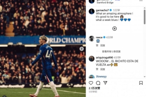 加納喬本場比賽首發出場,這位邊鋒賽后更新社媒慶祝,他寫道:多么棒的氛圍啊,很高興在這里踢球,非常好的一周。