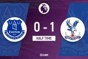 傷停補(bǔ)時(shí)2分鐘。上半場(chǎng)比賽結(jié)束,埃弗頓0-1水晶宮。