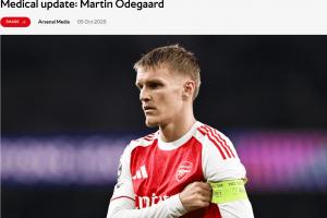 體育資訊10月05日訊 阿森納官方發布傷情公告,厄德高左膝韌帶受傷,退出本期挪威國家隊。