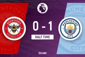 半場-曼城暫1-0布倫特福德 哈蘭德破門 羅德里無對抗傷退