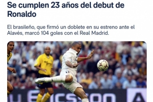 2002年10月6日,在伯納烏對陣阿拉維斯的比賽中,羅納爾多替補(bǔ)登場僅一分鐘便取得進(jìn)球,并最終以梅開二度的表現(xiàn)開啟了他的皇馬生涯。