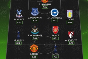 后衛:穆尼奧斯(水晶宮)、塔科夫斯基(埃弗頓)、范赫克(布萊頓)、迪涅(維拉)