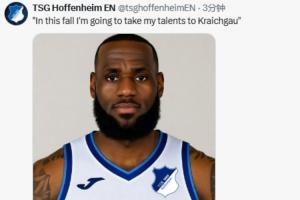 而德甲霍芬海姆也借機(jī)在社媒玩了一把梗。他們的英文社媒賬號(hào)曬出詹姆斯身穿霍芬海姆球衣的P圖照片,并配文道:“這個(gè)秋天,我將把天賦帶到克萊希高(霍芬海姆所在地)。”