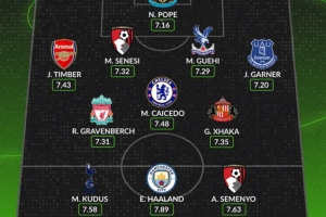 前鋒:庫杜斯(熱刺)、哈蘭德(曼城)、塞梅尼奧(伯恩茅斯)