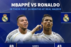 效力皇馬前16個月數據:姆巴佩69場58球7助,C羅43場36球13助