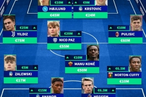 中場:伊爾迪茲(尤文,7500萬歐元,+2500萬歐元)、尼科-帕斯(科莫,5500萬歐元,+2000萬歐元)、馬努-科內(羅馬,5000萬歐元,+1000萬歐元)、普利西奇(米蘭,6000萬歐元,+1000萬歐元)
