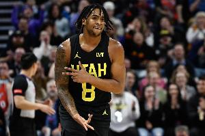 本場比賽,爵士球員森薩博表現(xiàn)出色,尤其是外線十分神準(zhǔn),在26分鐘的時(shí)間里,投籃15中9,三分球10中6,拿到24分3籃板1助攻1搶斷1蓋帽的數(shù)據(jù)。