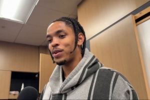 在今天的比賽中,米諾特多次在哨響后封蓋對手的投籃,主帥喬-馬祖拉隨后滿意地走上前去。對此,米諾特表示:“我們不吃這一套。你絕對不能讓對手看到球穿過籃筐。”