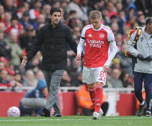 本輪英超阿森納2-0西漢姆聯(lián),厄德高上半場第19分鐘與對手膝對膝碰撞,隨后繼續(xù)在場上堅持了10分鐘后被傷退離場。