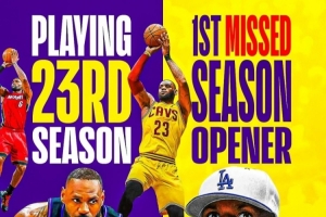 詹姆斯生涯首次缺席常規(guī)賽揭幕戰(zhàn) 此前他已經(jīng)連續(xù)出戰(zhàn)22次!