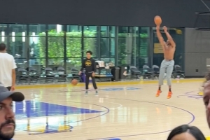 體育資訊10月10日訊 湖人記者Jovan Buha曬出一段新秀阿杜-蒂耶羅在訓練結束之后加練三分球的視頻。