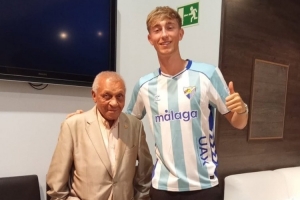 回家!赫伊森造訪青訓母隊馬拉加,身穿馬拉加球衣拍照