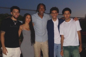 據(jù)美媒統(tǒng)計(jì),皮蓬一共生了7位子女,圖中的4個(gè)孩子均與拉爾薩所生,分別是小皮蓬(24歲,左一)、普雷斯頓(23歲,右一)、賈斯汀(20歲,右二)和索菲婭(16歲)。