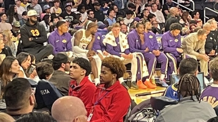 體育資訊10月13日訊 NBA季前賽,湖人主場迎戰(zhàn)勇士,詹姆斯坐在了更高的椅子上,但蹺了個二郎腿。