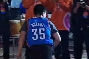 嚴父型球迷!徐靜雨場上怒換杜蘭特雷霆球衣 追夢一旁鼓掌大笑