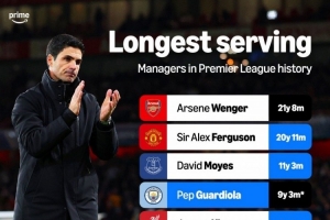 英超執教一家俱樂部時間榜:溫格、弗格森前兩名,阿爾特塔第十
