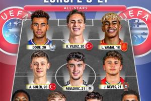 體育資訊10月13日訊 Score 90評選了歐洲U21年齡段的全明星陣容,亞馬爾、若昂-內維斯領銜,其中西班牙三人,土耳其、法國、英格蘭各兩人,葡萄牙、德國各一人。