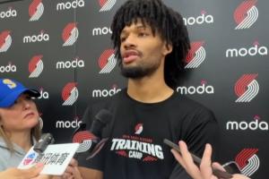 開拓者今日隊內訓練,訓練后夏普接受采訪談到了楊瀚森,小吧整理了部分采訪內容。