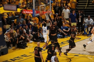 在總決賽的總比分戰平2-2之際,庫里率領勇士在主場拿下了系列賽的天王山之戰;盡管詹姆斯得到了全場最高的40分,外加14籃板11助攻的大號三雙,但庫里在末節關鍵時刻站了出來,獨得17分,徹底撲滅了騎士反撲的勢頭。