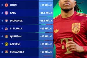 8、埃茲奎爾-費(fèi)爾南德斯(勒沃庫(kù)森):+1300萬(wàn)歐元