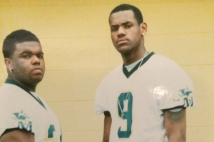 青春年少!詹姆斯轉發與高中隊友身穿橄欖球隊服合照