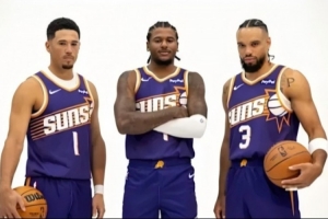 上上季太陽有布克、格雷森·阿倫、比爾和埃里克·戈登四個2號位,中鋒是努基奇和206公分的尤班克斯。
