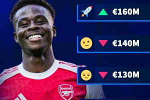 漲還是跌?德轉預熱薩卡身價變動:最低1.2億歐??最高1.6億??