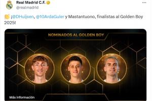 此前金球未發(fā)文,皇馬祝賀赫伊森、居萊爾和馬斯坦托諾進(jìn)金童候選