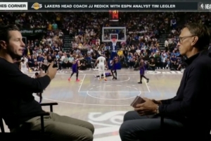 體育資訊10月16日訊 今日,ESPN節目組播出了湖人主帥雷迪克解析上賽季湖人防守錄像片段中的防守戰術的內容。