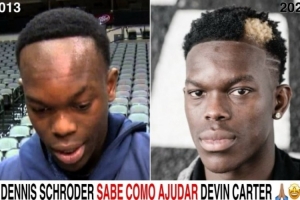 體育資訊10月16日訊 國(guó)外自媒體goatbr曬出了德文-卡特和隊(duì)友施羅德的發(fā)際線對(duì)比圖,并調(diào)侃到:“施羅德知道該怎么幫你。”
