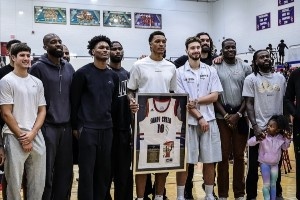小賈巴里-史密斯曾就讀于喬治亞州的Sandy Creek高中,球隊(duì)為了表彰小賈高中時(shí)期為球隊(duì)的貢獻(xiàn),在今天正式退役了他的10號(hào)球衣。