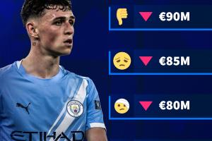億元先生-1!德轉預熱福登身價變化:必定下降,最多跌至7500萬歐