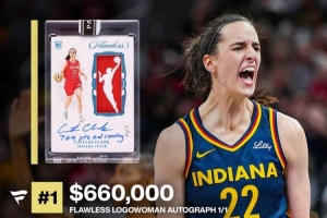 而今年兩筆最大交易分別是1of1的Logo Woman球星卡,成交價高達66萬美元,創(chuàng)下了女性體育卡片史上最高成交紀錄,而她相關(guān)的球星卡成交價TOP5都超過了31萬美元。