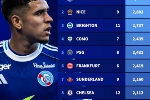 五大聯賽U21出場時間排行:斯特拉斯堡以5785分鐘高居榜首
