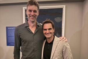 體育資訊9月22日訊 今天,前NBA球員保羅-加索爾在社媒上曬出了和網球名將費德勒的合影。