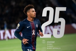 巴黎官方統(tǒng)計,杜埃職業(yè)生涯至今參與25粒法甲進球(13球12助),成為在法甲首位達成這一數據的2004年及之后出生球員,他出生于2005年6月3日。