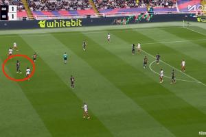 比賽最后十分鐘,阿勞霍客串中鋒頂在鋒線位置。