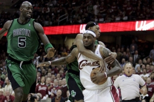 2010年東部半決賽(騎士VS綠軍)G4中,詹姆斯在完成后場搶斷后準備上籃,緊隨身后的皮爾斯采取犯規戰術,兩人互相抱著摔入了觀眾席。詹姆斯的母親在現場觀戰憤怒不已,詹姆斯在一旁對著母親大吼道:“Sit down!(你給我坐下?。?/p>