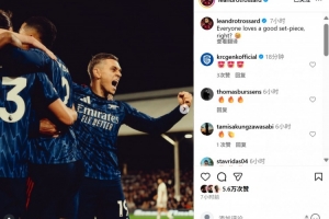 體育資訊10月19日訊 在本輪英超,阿森納1-0小勝富勒姆,特羅薩德利用角球機會破門得分。