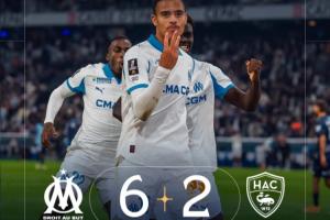 體育資訊10月19日訊 法甲第8輪,馬賽6-2大勝勒阿弗爾,豪取法甲5連勝,登頂積分榜。