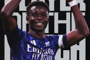 官方:薩卡當選阿森納1-0富勒姆隊內全場最佳