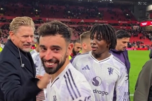 舒梅切爾賽后與拉門斯擁抱,祝賀曼聯球員雙紅會取勝