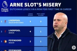 本賽季利物浦,聯賽3場失利,最長連敗3場