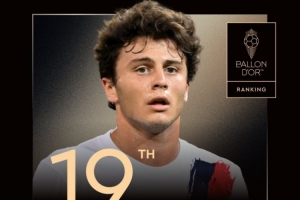 體育資訊9月23日訊 2025年金球獎排名陸續公布,巴黎中場若奧-內維斯獲得第19名,生涯首次提名。