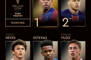 科帕獎最終排名:亞馬爾第1、杜埃第2、伊爾迪茲第5、赫伊森第6