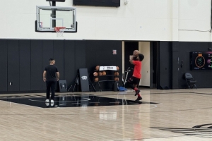 體育資訊10月21日訊 開拓者隨隊記者Sean Highkin曬照,開拓者后衛(wèi)亨德森訓(xùn)練后單獨(dú)進(jìn)行了投籃練習(xí),楊瀚森的翻譯劉禹鋮(克里斯)在旁邊幫他撿籃板。