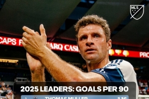 本賽季美職聯(lián)每90分鐘進球榜:穆勒1.16球居首,梅西1.08球次席