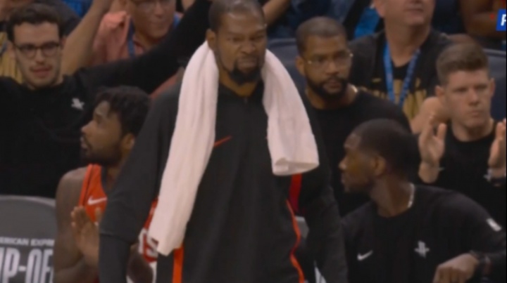 GIF-申京神奇打板中投命中&造成犯規 全隊起立杜蘭特撇嘴做鬼臉
