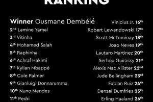 隊報記者Arthur Verdelet:查看完整的排名以及每位球員之間的積分差距,需要等到周六。屆時《法國足球》雜志的最新一期將發售(同時也將提供PDF版本)。