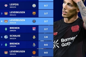 體育資訊10月22日訊 在本輪歐冠,勒沃庫森2-7慘敗給巴黎。德轉(zhuǎn)也盤點(diǎn)了德甲球隊(duì)在歐冠歷史最大比分失利榜單,具體如下: